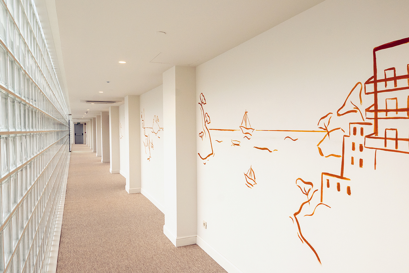 Su storytelling invita a embarcarse en un viaje a través del Mediterráneo. El artista Jorge Parra, se encarga de dar vida al proyecto a través de sus dibujos que podemos contemplar en los pasillos, diferentes en cada planta, evocando las artes, la cultura, la tradición y el clima de la costa mediterránea. Los objetos de cerámica como las fragancias y esencias están elaborados a partir de productos locales.