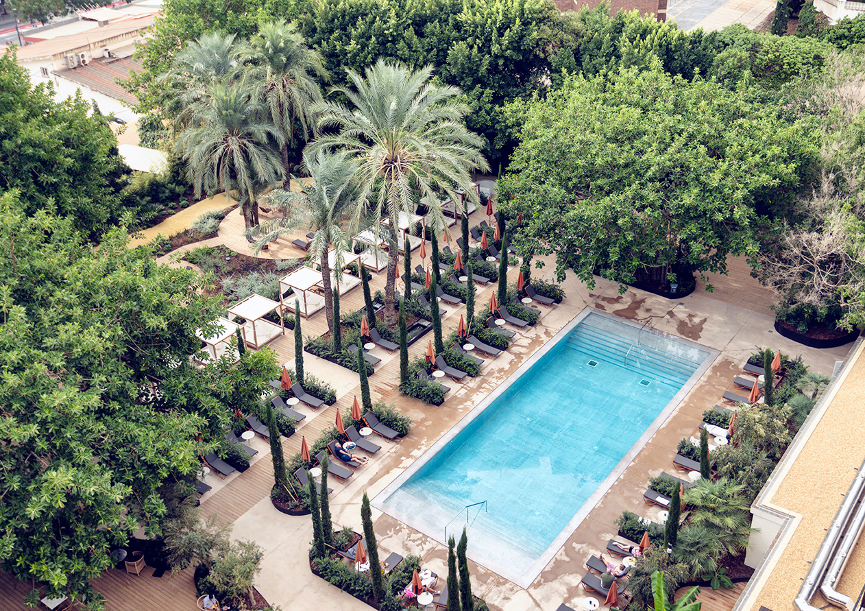 El interiorismo, de carácter minimalista, ha ido a cargo del estudio alicantino BURONDO, mientras que el paisajista Álvaro Sampedro ha liderado el área de jardinería que posee un huerto urbano totalmente integrado en el paisaje del hotel.