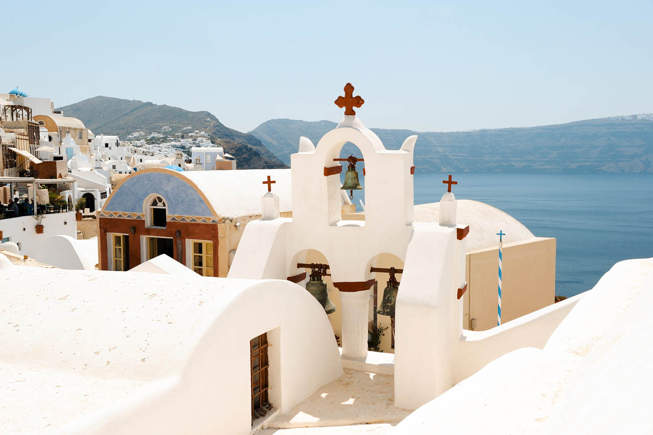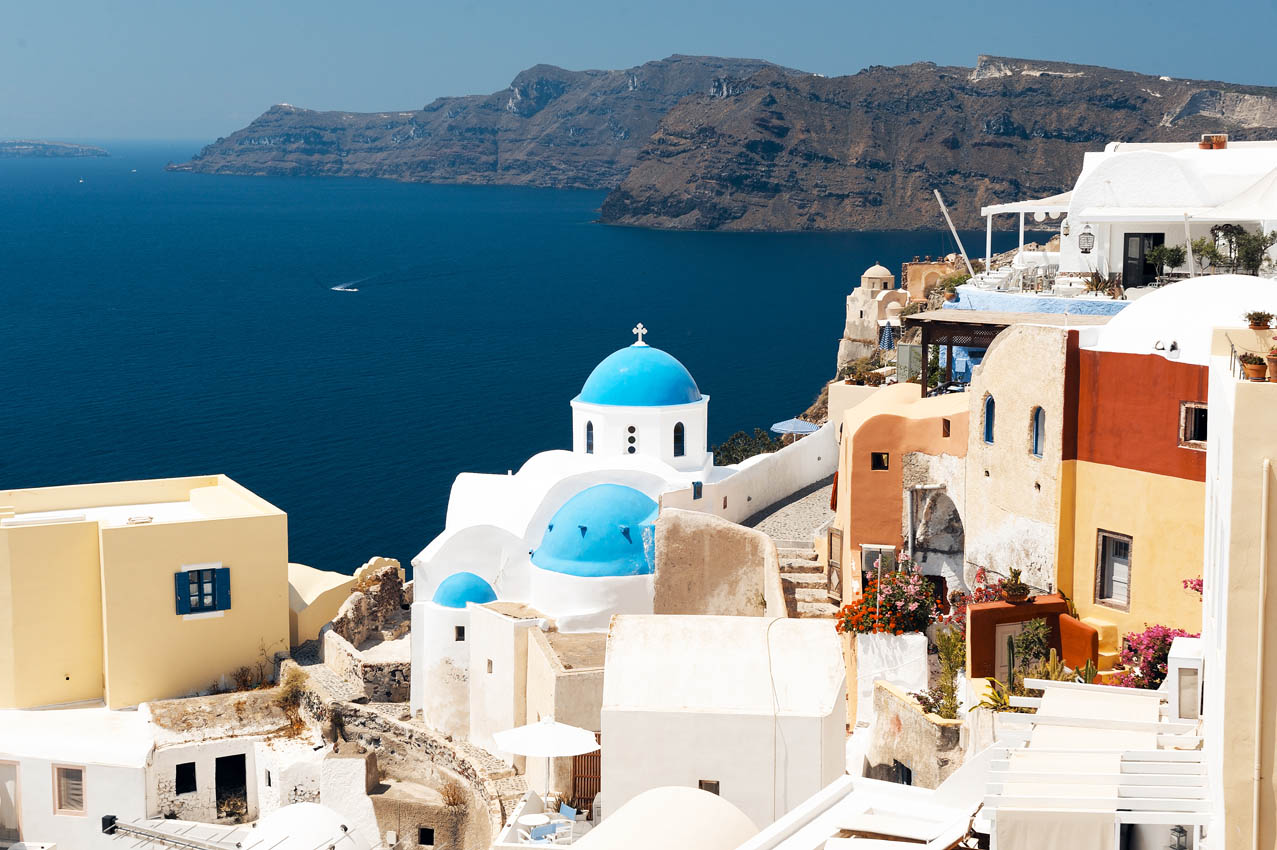 No es fácil hacerse una idea de la magnitud de la explosión del volcán que destruyó los primeros pueblos en Santorini y que hizo desaparecer gran parte del territorio de la antigua isla, dividiéndola en seis y transformándola en un archipiélago circular cuyo centro es la enorme caldera. Lo verás más claro cuando lleguesa Fira, la capital, enclavada en el borde de un acantilado a 260 metros sobre el mar, y atisbes el cráter circular hoy inundado por el agua. Para subir hasta la ciudad existen dos opciones: tomar un cómodo teleférico que te llevará hasta Fira en apenas cinco minutos o bien poner a prueba tus dotes como jinete y subirte a lomos de un asno para que este te lleve por un zigzagueante y empinado camino de casi 600 escalones en un ascenso de unos 20 minutos de duración. Este medio de transporte cuadrúpedo está muy solicitado, pero no es apto para remilgados.