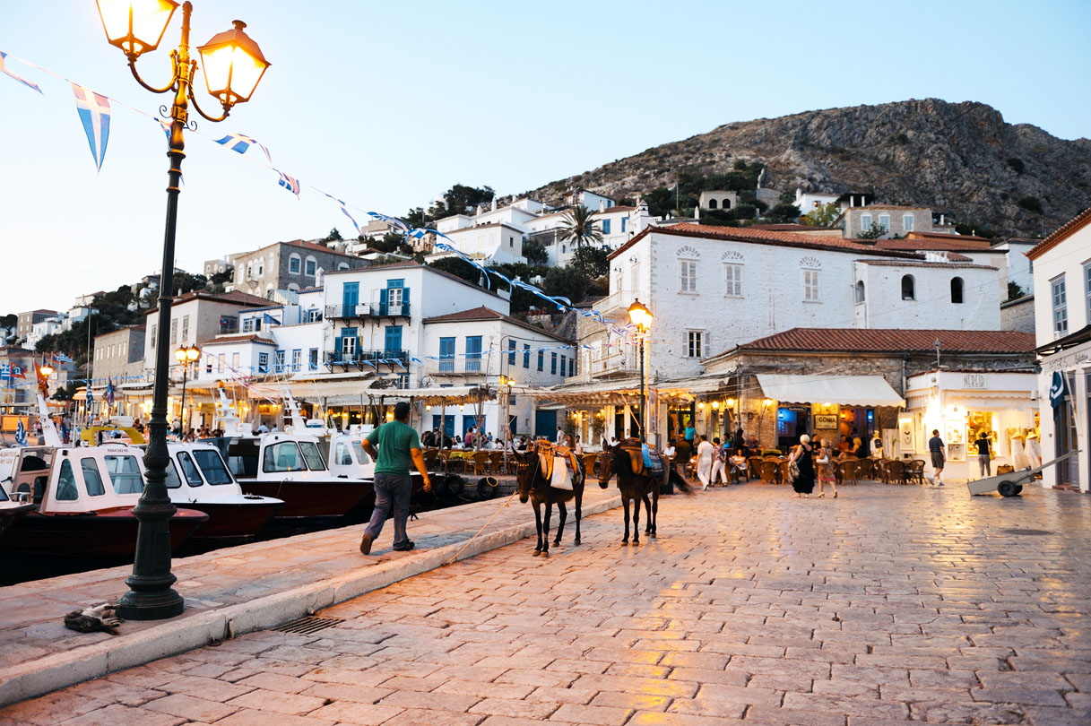 El minúsculo puerto de Hydra en forma de media luna solo es apto para pequeñas embarcaciones, una característica que juega a su favor, porque esta pequeña islas de apenas 50 km2 no soportaría una avalancha de cruceristas, ya que perdería todo su encanto. Hydra es totalmente blanca, con entrañables casas bajas y callejuelas estrechas empedradas por las que está prohibida la circulación de cualquier vehículo a motor, un atractivo reclamo para los viajeros, que pueden ver cómo su equipaje es cargado en carros o directamente sobre los lomos de un burro para ser transportado hasta sus alojamientos. Su cercana ubicación a la capital griega –a tan solo tres horas de Atenas– y su belleza atemporal la convirtieron en el escondite perfecto de los famosos y la jet-set en los años sesenta. Aunque es cierto que cuando se corrió la voz, sus playas se llenaron de turistas. A pesar de ello, su orografía montañosa ha impedido la construcción desmedida, protegiendo así su condición de isla tranquila. También se ha logrado mantener a salvo las casas antiguas y señoriales que fueron diseñadas y construidas por arquitectos genoveses y venecianos en su parte menos turística.
