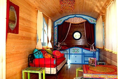 Enclavado en medio de un bosque de 35 hectáreas, aparece una propuesta de alojamiento alternativo: un verdadero carro zíngaro, el típico medio de transporte del pueblo gitano, conocido por su nomadismo, decorado con mucho colorido y con tanto encanto que al entrar en ellos uno se siente dentro de un cuento.