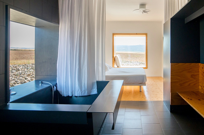 Y en medio de este desierto se alza el Hotel Aire de Bárdenas, un oasis aislado del mundanal ruido, sin duda, un lugar lleno de encanto para los más aventureros, que ofrece, en un mismo espacio, arquitectura, diseño, comodidad y buena gastronomía. Todo está pensado al detalle, empezando por su innovador diseño que ha ganado una veintena de premios de arquitectura. Cada una de las habitaciones es un cubo independiente con grandes ventanales que ofrecen impresionantes panorámicas del desierto.