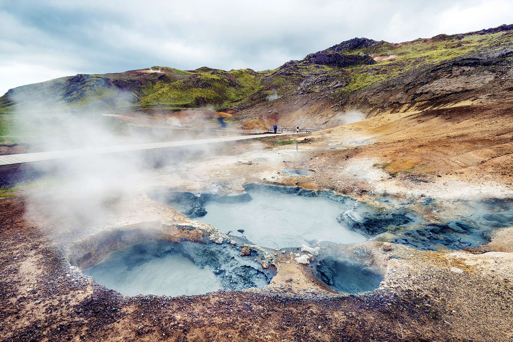 Para acabar el viaje, una buena idea es acercarse hasta Krýsuvík, un impresionante paisaje de fenómenos geotérmicos, lleno de aguas termales, piscinas de lodo hirviendo, respiraderos de vapor y los vibrantes rojos, amarillos y verdes del terreno rico en minerales. Situados en medio de la fisura de la cordillera del Atlántico Medio (al sur de Reykjanes) las principales secciones geotérmicas en Krysuvik son Seltun, Hverahvammur y Hverahlid. Aquí las columnas de vapor se elevan hacia el cielo y las piscinas de lodo burbujeante crean una sinfonía rítmica y con un olor muy característico.