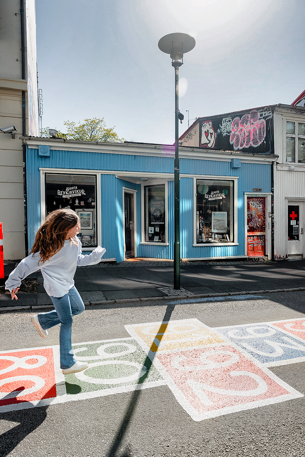 el Harpa, un original auditorio frente al mar con centenares de paneles que reflejan la luz en tonos azules o pasear por Laugavegur, la arteria comercial más antigua y que cuenta con tramos pintados en el suelo que harán las delicias de los peques: un paso de cebra gigante o una charranca con 100 casillas.