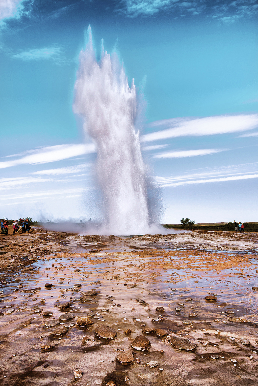 Nuestra siguiente parada es el área geotérmica de Geysir, donde se encuentra el Gran Geysir, el que dio nombre a este tipo de fenómeno natural, sin embargo hace años que dejó de estar activo (los turistas lanzaron tantas piedras que bloquearon la entrada). Por suerte, alejado tan solo unos pasos nos encontramos con el geysir Strokkur que afortunadamente sigue en funcionamiento. No es tan espectacular como el gran geysir, pero aun así impresiona ver cómo el agua caliente sale propulsada a intervalos más o menos regulares de entre 8 y 10 minutos hasta una altura de 30 metros.